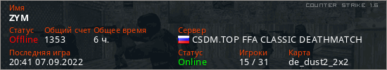 Играет на Counter Strike 1.6 сервере. Страна: РоссияПервый раз замечен 03:08 21.11.2021