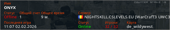 Играет на Counter Strike 1.6 сервере. Страна: РумынияПервый раз замечен 10:54 02.02.2026