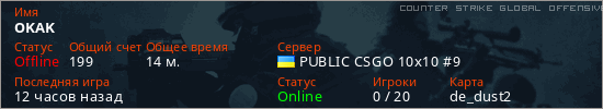 Играет на Counter Strike Global Offensive сервере. Страна: УкраинаПервый раз замечен 20:34 06.03.2026