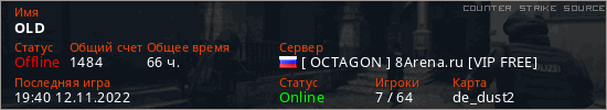 Играет на Counter Strike Source сервере. Страна: РоссияПервый раз замечен 11:15 21.10.2021