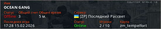 Играет на Counter Strike 1.6 сервере. Страна: УкраинаПервый раз замечен 17:15 15.02.2026