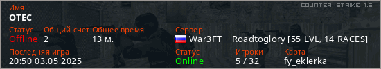 Последний раз был в сети 20:50 03.05.2025 Игрок с таким ником замечен на 18 серверах