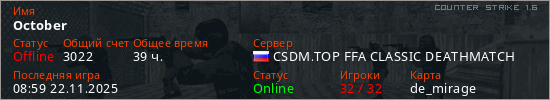 Последний раз был в сети 08:59 22.11.2025 Игрок с таким ником замечен на 11 серверах