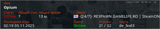 Последний раз был в сети 02:19 05.11.2025 Игрок с таким ником замечен на 21 сервере