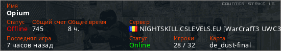 Последний раз был в сети 6 часов назад Игрок с таким ником замечен на 21 сервере