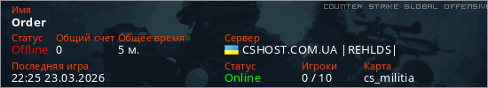 Играет на Counter Strike Global Offensive сервере. Страна: УкраинаПервый раз замечен 21:56 23.03.2026