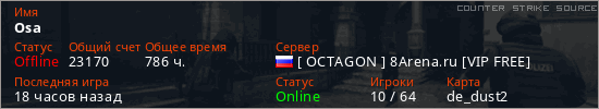 Последний раз был в сети 16 часов назад Игрок с таким ником замечен на 8 серверах