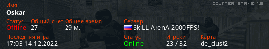 Последний раз был в сети 17:03 14.12.2022 Игрок с таким ником замечен на 20 серверах