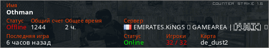 Играет на Counter Strike 1.6 сервере. Страна: ФранцияПервый раз замечен 02:46 20.03.2026