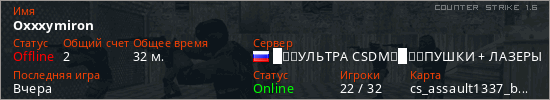 Играет на Counter Strike 1.6 сервере. Страна: РоссияПервый раз замечен 21:25 22.04.2026