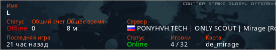 Последний раз был в сети 20 часов назад Игрок с таким ником замечен на 64 серверах