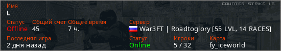 Играет на Counter Strike 1.6 сервере. Страна: РоссияПервый раз замечен 14:09 20.12.2020