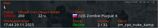 Играет на Counter Strike 1.6 сервере. Страна: РоссияПервый раз замечен 13:38 19.09.2021