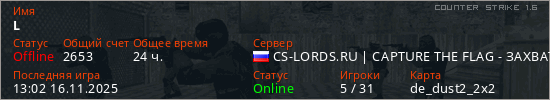 Последний раз был в сети 13:02 16.11.2025 Игрок с таким ником замечен на 49 серверах