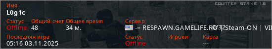 Играет на Counter Strike 1.6 сервере. Страна: СШАПервый раз замечен 07:12 10.02.2025