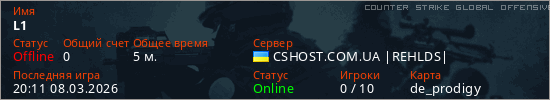 Играет на Counter Strike Global Offensive сервере. Страна: УкраинаПервый раз замечен 19:58 08.03.2026