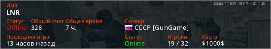 Играет на Counter Strike 1.6 сервере. Страна: РоссияПервый раз замечен 18:45 13.02.2024