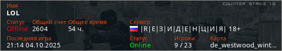 Играет на Counter Strike 1.6 сервере. Страна: РоссияПервый раз замечен 07:06 14.09.2021