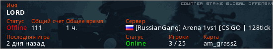 Играет на Counter Strike Global Offensive сервере. Страна: РоссияПервый раз замечен 23:52 22.03.2026
