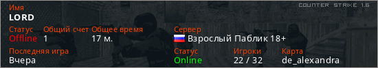 Последний раз был в сети Вчера Игрок с таким ником замечен на 42 серверах