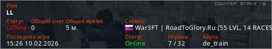 Играет на Counter Strike 1.6 сервере. Страна: РоссияПервый раз замечен 15:19 10.02.2026