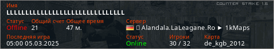Последний раз был в сети 05:00 05.03.2025 Игрок с таким ником замечен на 5 серверах