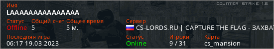 Общая информация игрока