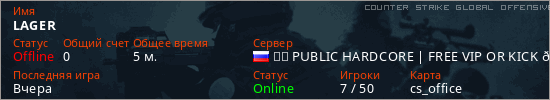 Играет на Counter Strike Global Offensive сервере. Страна: РоссияПервый раз замечен 11:31 05.03.2026