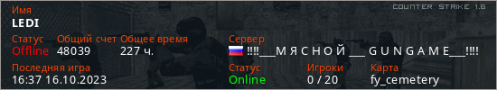 Последний раз был в сети 16:37 16.10.2023 Игрок с таким ником замечен на 3 серверах