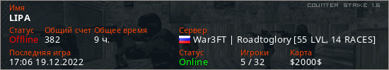Играет на Counter Strike 1.6 сервере. Страна: РоссияПервый раз замечен 16:41 28.10.2021