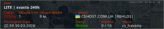 Играет на Counter Strike 1.6 сервере. Страна: УкраинаПервый раз замечен 21:39 30.03.2026