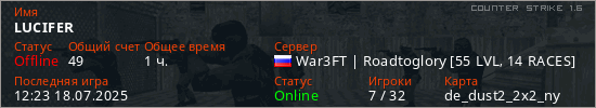 Играет на Counter Strike 1.6 сервере. Страна: РоссияПервый раз замечен 22:26 05.05.2022