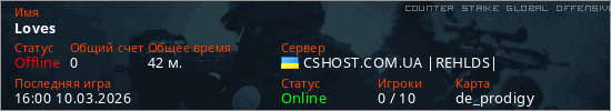 Играет на Counter Strike Global Offensive сервере. Страна: УкраинаПервый раз замечен 22:07 06.03.2026