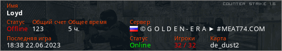 Играет на Counter Strike 1.6 сервере. Страна: РоссияПервый раз замечен 09:21 24.02.2023