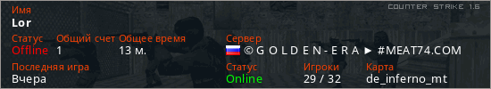 Играет на Counter Strike 1.6 сервере. Страна: РоссияПервый раз замечен 09:06 18.02.2026