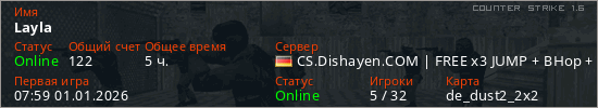 Играет на Counter Strike 1.6 сервере. Страна: ГерманияПервый раз замечен 07:59 01.01.2026