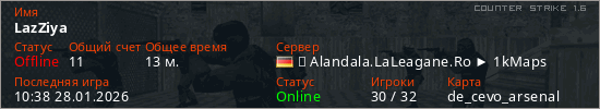 Играет на Counter Strike 1.6 сервере. Страна: ГерманияПервый раз замечен 09:20 28.01.2026