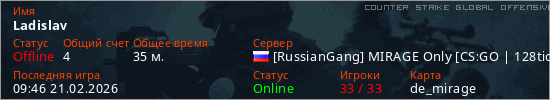 Играет на Counter Strike Global Offensive сервере. Страна: РоссияПервый раз замечен 08:57 21.02.2026