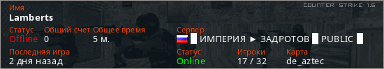 Последний раз был в сети Вчера Игрок с таким ником замечен на 4 серверах