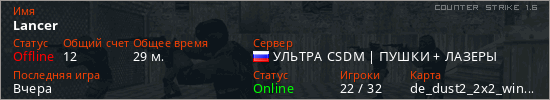 Последний раз был в сети Вчера Игрок с таким ником замечен на 16 серверах