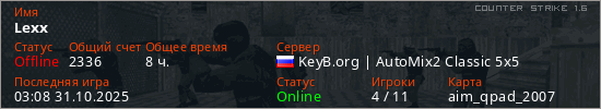 Последний раз был в сети 03:08 31.10.2025 Игрок с таким ником замечен на 17 серверах