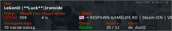 Общая информация игрока
