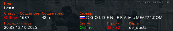 Играет на Counter Strike 1.6 сервере. Страна: РоссияПервый раз замечен 06:14 25.01.2023