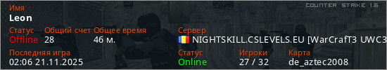 Последний раз был в сети 02:06 21.11.2025 Игрок с таким ником замечен на 47 серверах