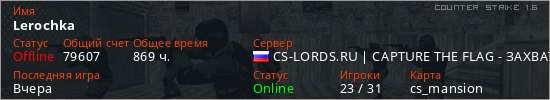 Последний раз был в сети Вчера Игрок с таким ником замечен на 6 серверах