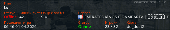 Играет на Counter Strike 1.6 сервере. Страна: ФранцияПервый раз замечен 06:11 01.04.2026