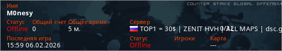 Играет на Counter Strike Global Offensive сервере. Страна: РоссияПервый раз замечен 15:40 06.02.2026