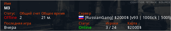 Играет на Counter Strike Source сервере. Страна: РоссияПервый раз замечен 12:03 09.03.2026