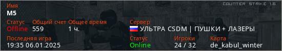 Последний раз был в сети 19:35 06.01.2025 Игрок с таким ником замечен на 37 серверах