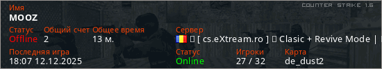 Играет на Counter Strike 1.6 сервере. Страна: РумынияПервый раз замечен 13:21 28.01.2025